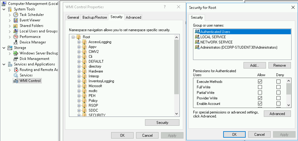 VERBOSE: [dc.abc.example.local : SYSTEM\CurrentControlSet\Control\Lsa\Data] Creating the trustee WMI